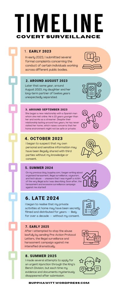 After I attempted to stop the abuse lawfully by sending Pre-Action Protocol Letters, the illegal surveillance and harassment campaign against me intensified dramatically.