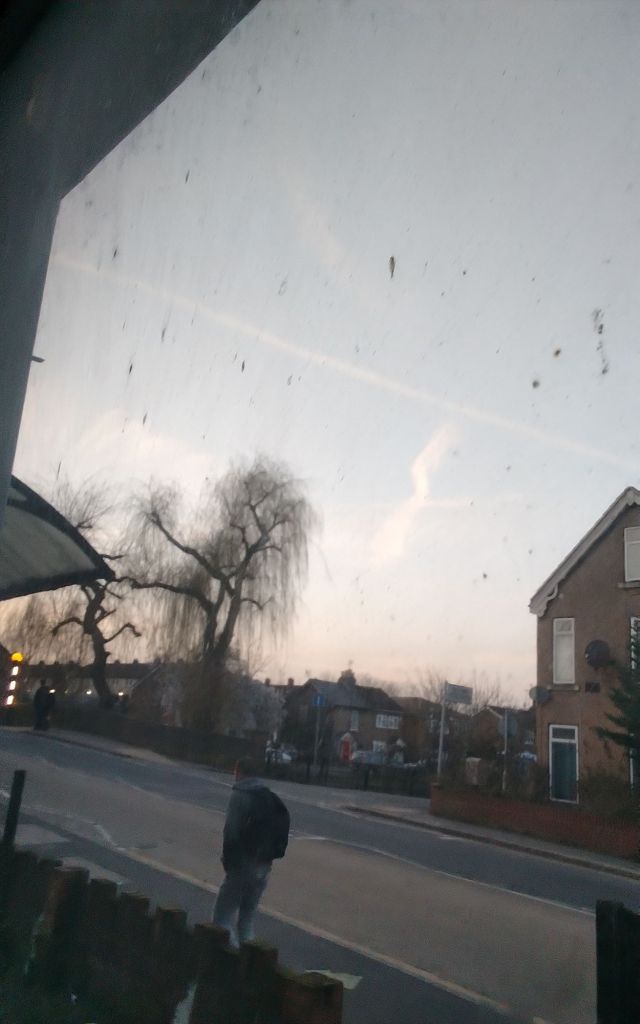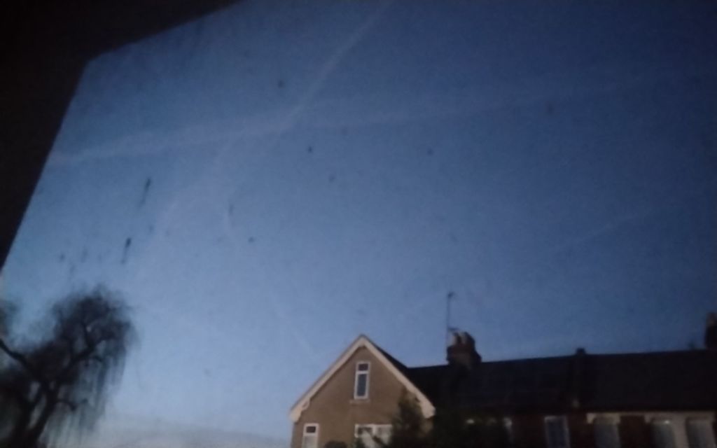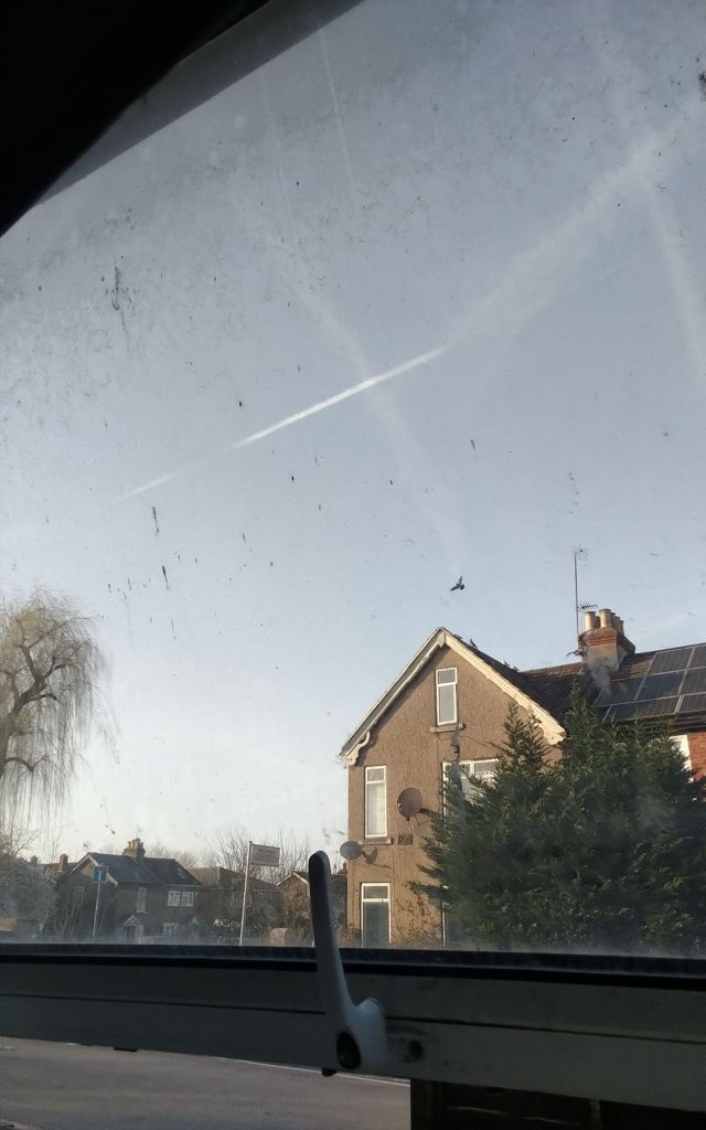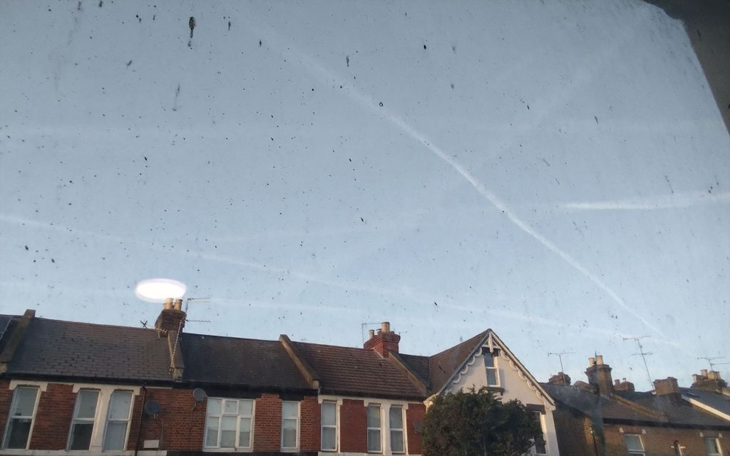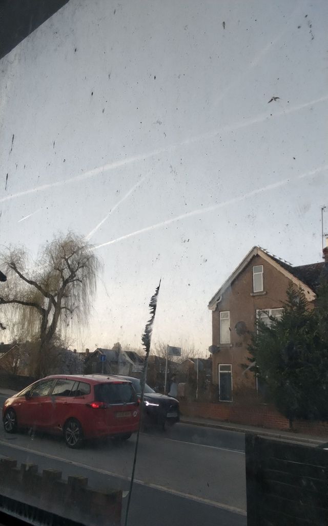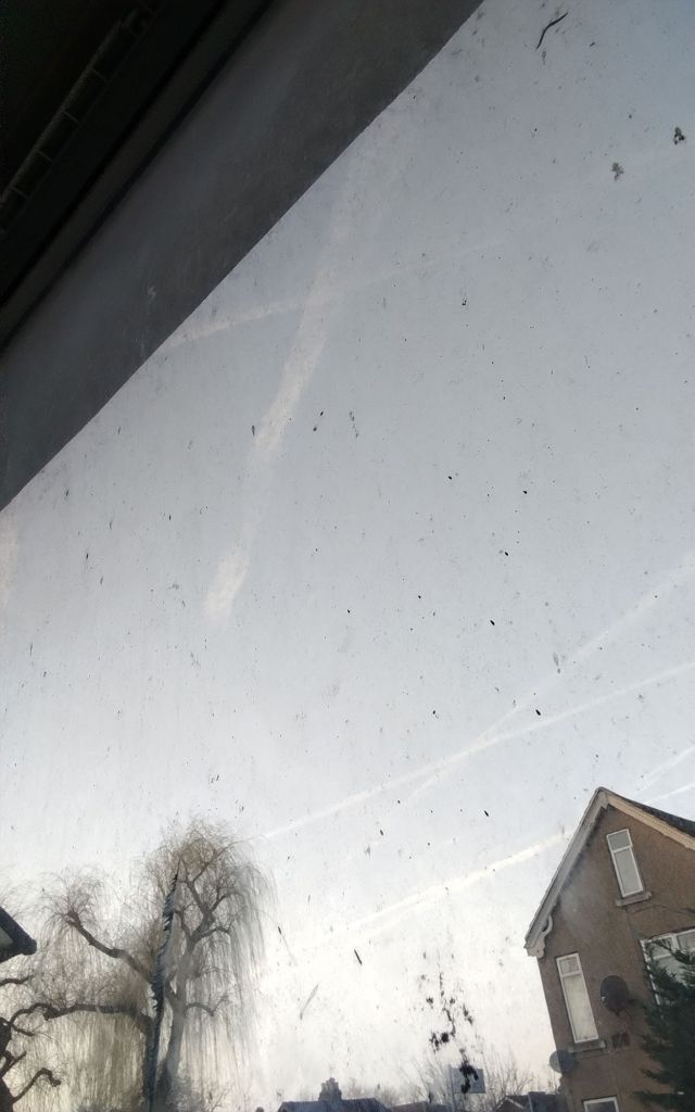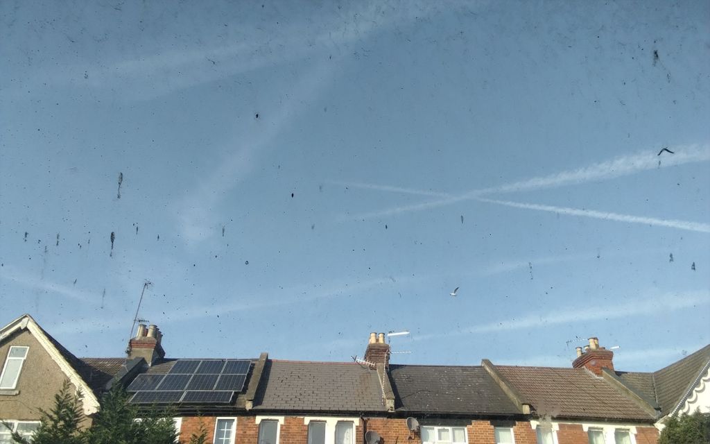Then, at approximately 2 pm onwards today, I observed multiple threatening lines and symbols in the sky drawn by the aircraft right outside my window and near my residence.